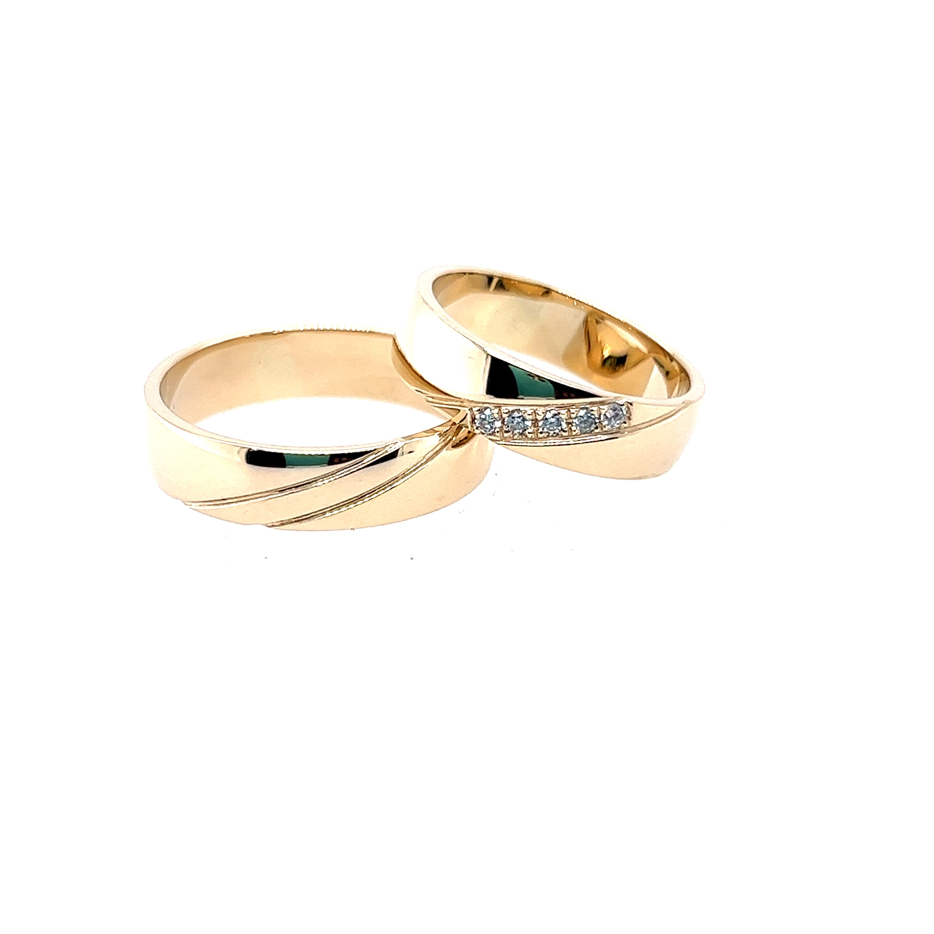 Венчални халки от "Jacklin hugasian" в жълто злато с циркони