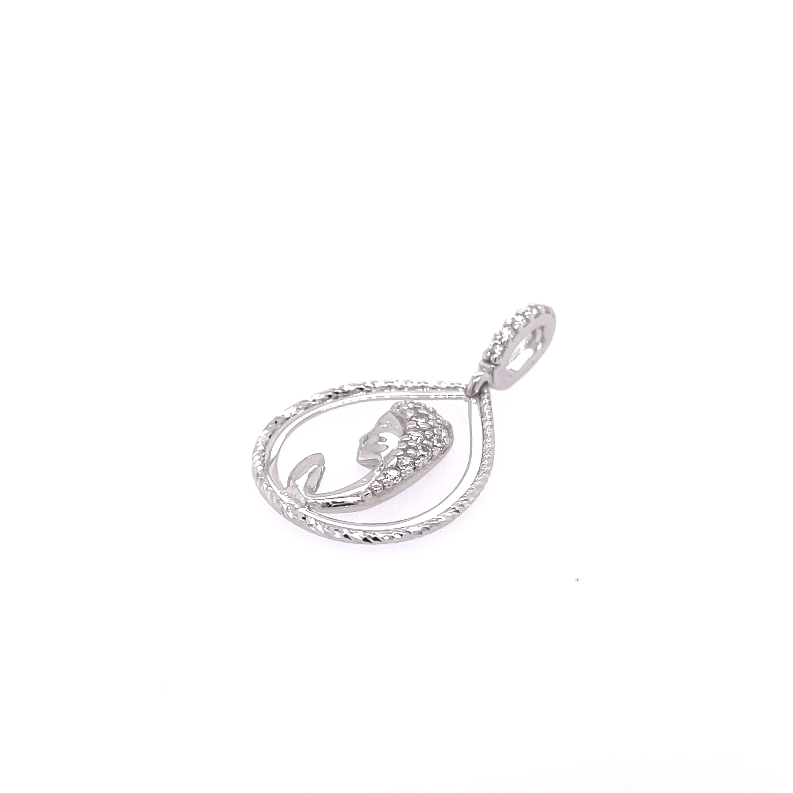 Висулка от “Jacklin hugasian” в бяло златo гланц с циркони и лазерна шлифовка.