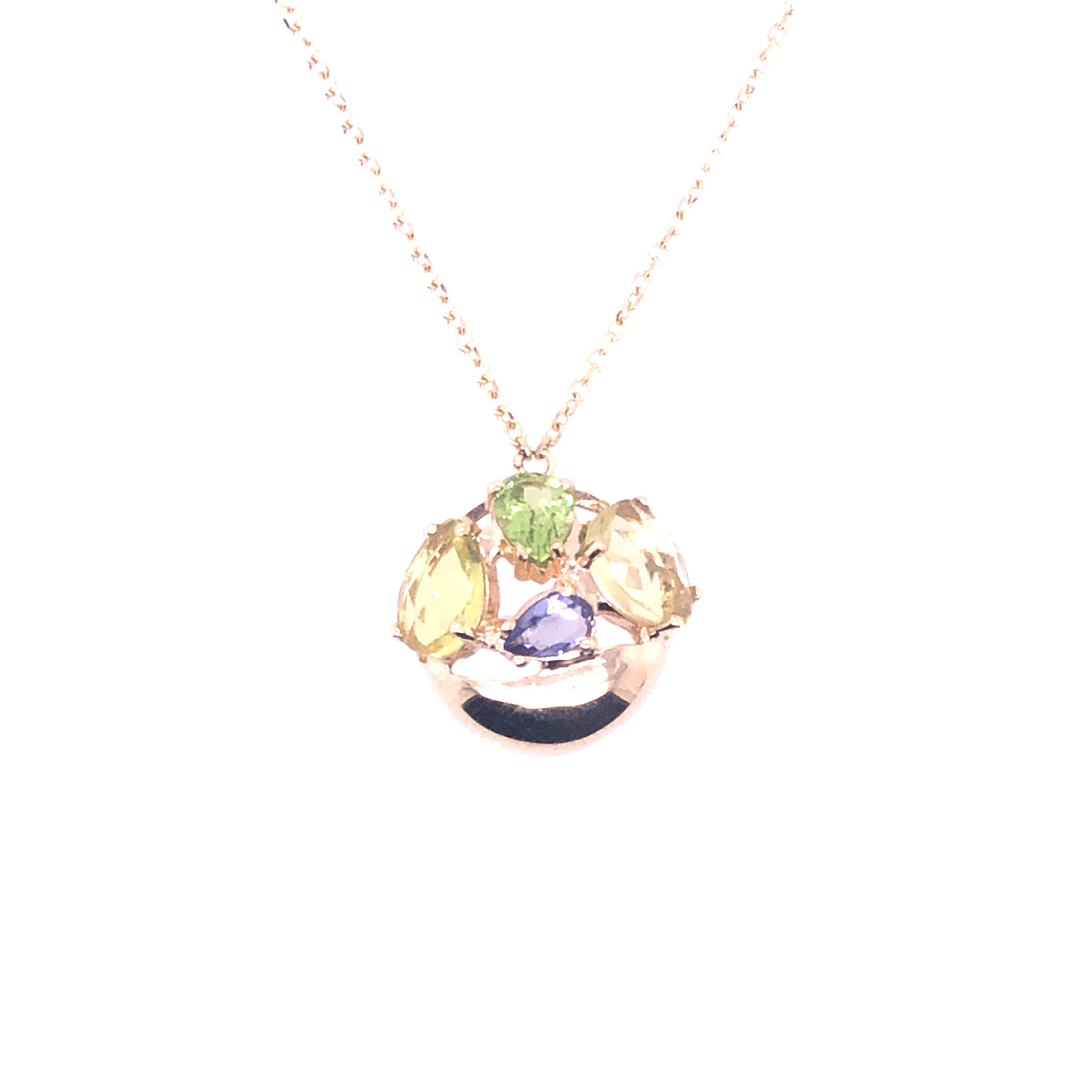 Колие от “Jacklin hugasian” в жълто злато с цитрин,аметист и перидот.