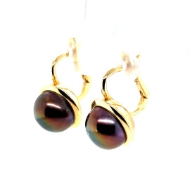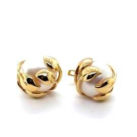 Обеци от "Jacklin hugasian " в жълто злато гланц с култивирана перла