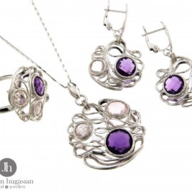 Комплект от “Jacklin hugasian” в бяло злато с аметист и циркони.