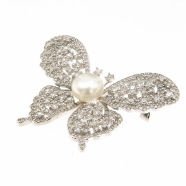 Брошка "Пеперуда" от "Jacklin " в сребро с цирконии и култивирана бяла перла