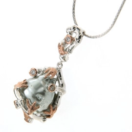 Висулка от "Jacklin " в бяло и розово сребро със сива перла и цирконии