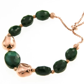 Гривна от " Jacklin " в розово сребро с изумруд и цирконий