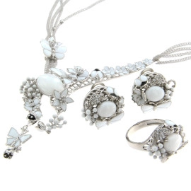 Колие от "Jacklin " в сребро с бял ахат, цветен емайл и циркони