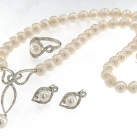 Пръстен от "Jacklin " в сребро с цирконии, седеф и култивирана бяла перла