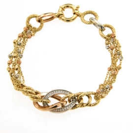 Гривна от ”Jacklin ” в жълто, бяло и розово злато гланц, лазерна обработка и цирконии