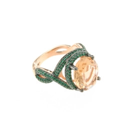 Пръстен от "Jacklin " в розово сребро гланц със златист топаз и зелен изумруд