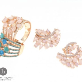 Комплект пръстен и обеци от “Jacklin ” в сребро с позлата.
