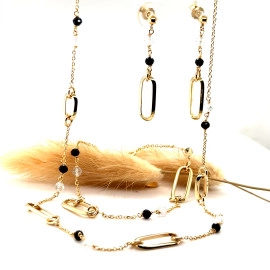 Комплект от “Jacklin ” в жълто злато с оникс и розов кварц