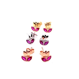 Обеци от “Jacklin ” в жълто,в бяло и в розово златo със синтетичен рубин