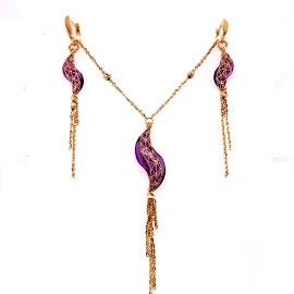 Комплект от “Jacklin ” в жълто злато с аметист и лазерна шлифовка