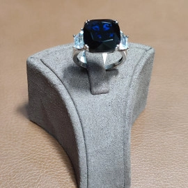 Пръстен от "Jacklin hugasian " в сребро с цирконии и тъмно син сапфир