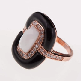 Пръстен от "Jacklin " в розово сребро с оникс, цирконии и бял ахат