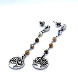 Обеци от "Jacklin " в оксидирано сребро с лунен камък, опал и розов кварц