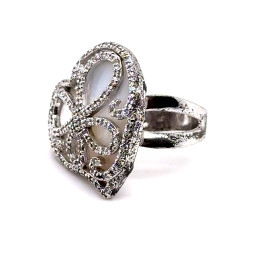 Пръстен от "Jacklin " в сребро с бял седеф и циркони