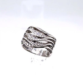 Пръстен от "Jacklin " в сребро с цирконии и черни оникси