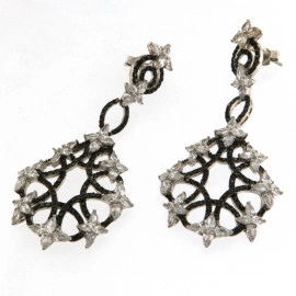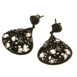 Обеци от " Jacklin " сребро с цирконийи черни оникси