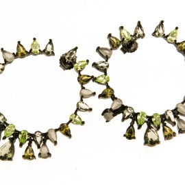 Обеци от "Jacklin " в сребро с черен родий, цирконии, тюрмалин, перидот, бял кварц, топаз