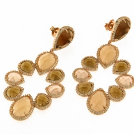 Обеци от "Jacklin " розово сребро с цирконии, опушен топаз, златист топаз, бледо розов кварц