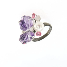 Пръстен от "Jacklin " в сребро с култивирана перла и цирконии