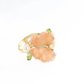 Пръстен от " Jacklin " в розово сребро с цирконии, опушен топаз и златист топаз