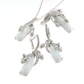 Комплект пръстен, и колие от "Jacklin " в сребро с бял ахат и циркони