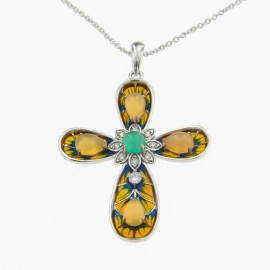 Колие от "Jacklin " в сребро с цветен емайл, изумруд и циркон