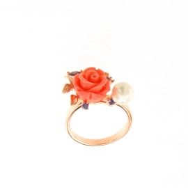 Пръстен от "Jacklin " в оксидирано сребро с разноцветен емайл с перла, опал, котешко око, изумруд, сапфири, аметист и циркони