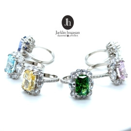 Комплект колие, обеци , пръстен и гривна от “Jacklin hugasian” в сребро с цветни циркони