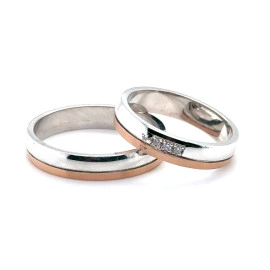 Венчални халки от "Jacklin " бяло злато и розово гланц с диаманти