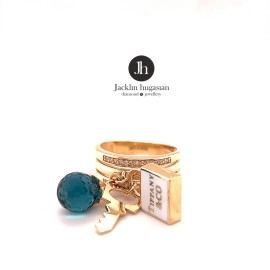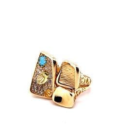 Пръстен от “Jacklin ” в жълто злато гланц с топаз,циркони и цветен емайл.