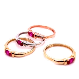 Пръстен от “Jacklin ” в жълто,в бяло и в розово злато със синтетичен рубин