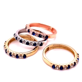 Пръстен от “Jacklin ” в жълто,в бяло и в розово злато с циркони и синтетичен сапфир
