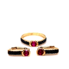 Комплект обеци и пръстен от “Jacklin ” в жълто злато с оникс и рубин