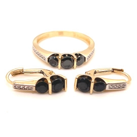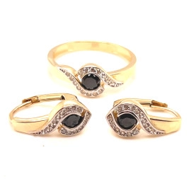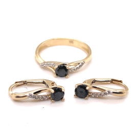 Комплект обеци и пръстен от “Jacklin ” в жълто злато с оникс и циркони