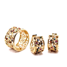 Комплект от “Jacklin ” в жълто злато с разноцветни камъни