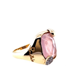 Пръстен от “Jacklin ” в жълто злато с розов кварц и циркони.