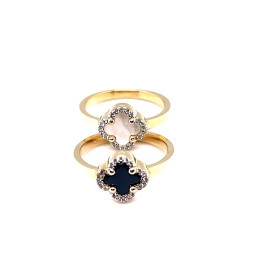 Пръстен от “Jacklin ” в жълто злато с оникс и циркони