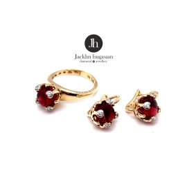 Пръстен от “Jacklin ” в жълто злато със синтетичен рубин