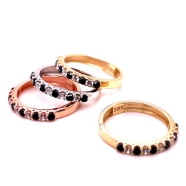 Пръстен от “Jacklin ” в жълто,в бяло и в розово злато с циркони и оникс