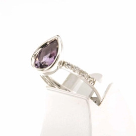 Пръстен от "Jacklin " в бяло злато с аметист и циркони