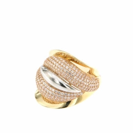 Пръстен от "Jacklin " в жълто, бяло и розово злато с циркони