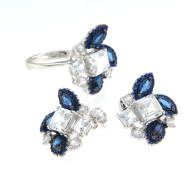 Комплект пръстен и обеци от “Jacklin hugasian” в сребро с цирконии и розов турмалин.