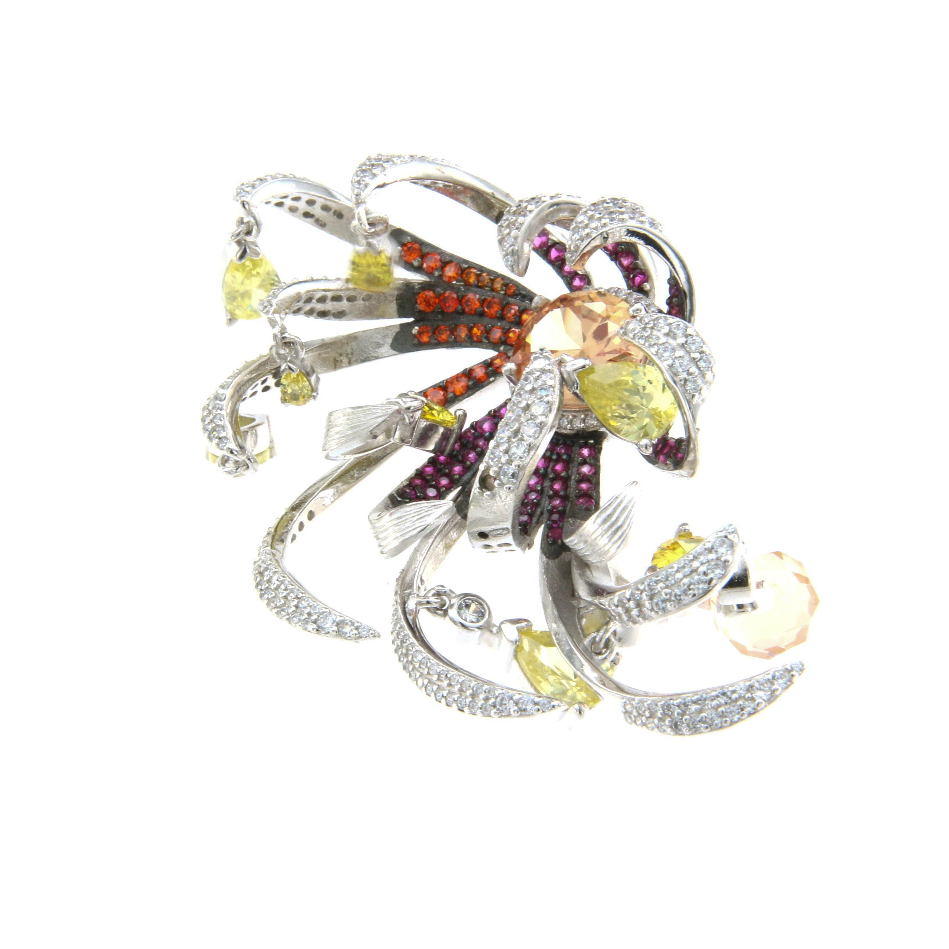 Брошка от ”Jacklin hugasian” в сребро с, цитрин, розов кварц,рубини,топаз и циркони.