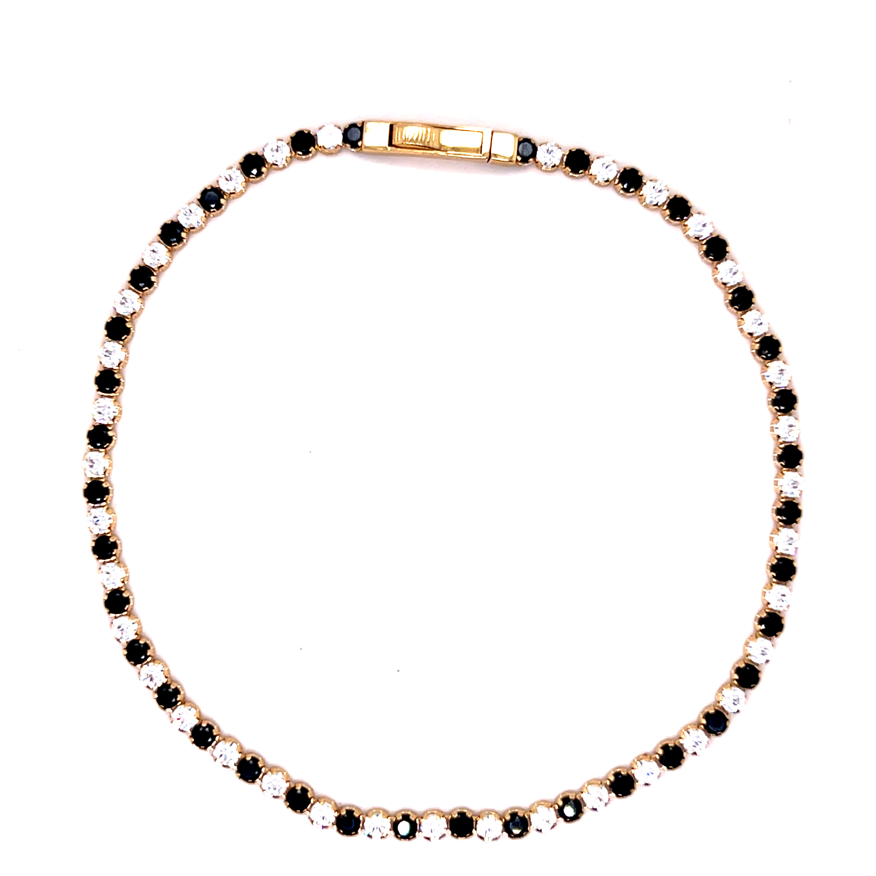 Гривна от „Jacklin hugasian“ в жълто злато с оникс и циркони.
