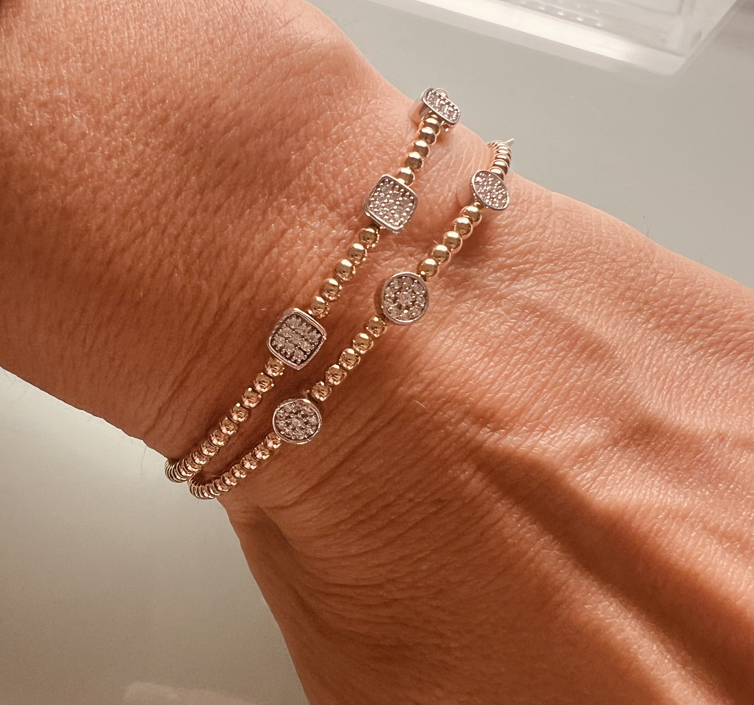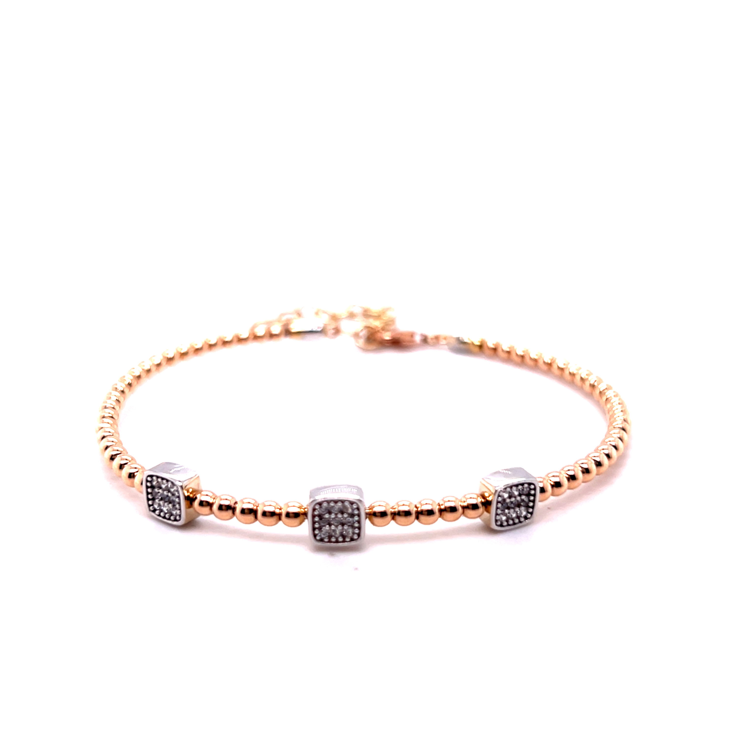 Гривна от “Jacklin hugasian” в розово и бяло злато гланц, с циркони