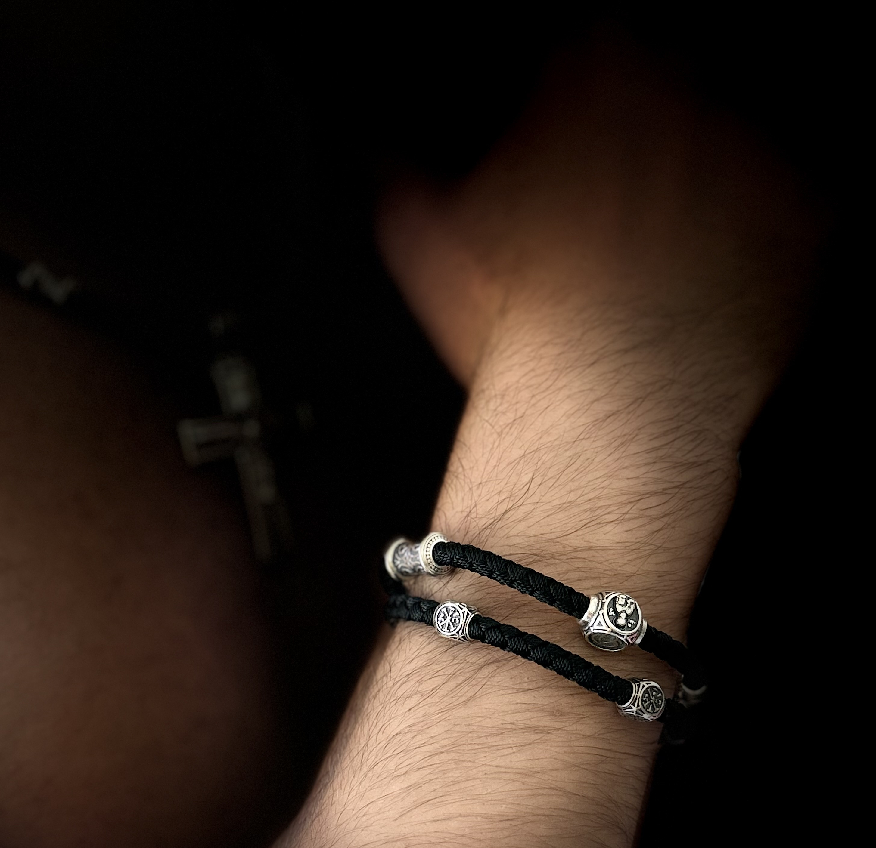 Гривна от „Jacklin hugasian“ в сребро с оксидация и копринен конец .