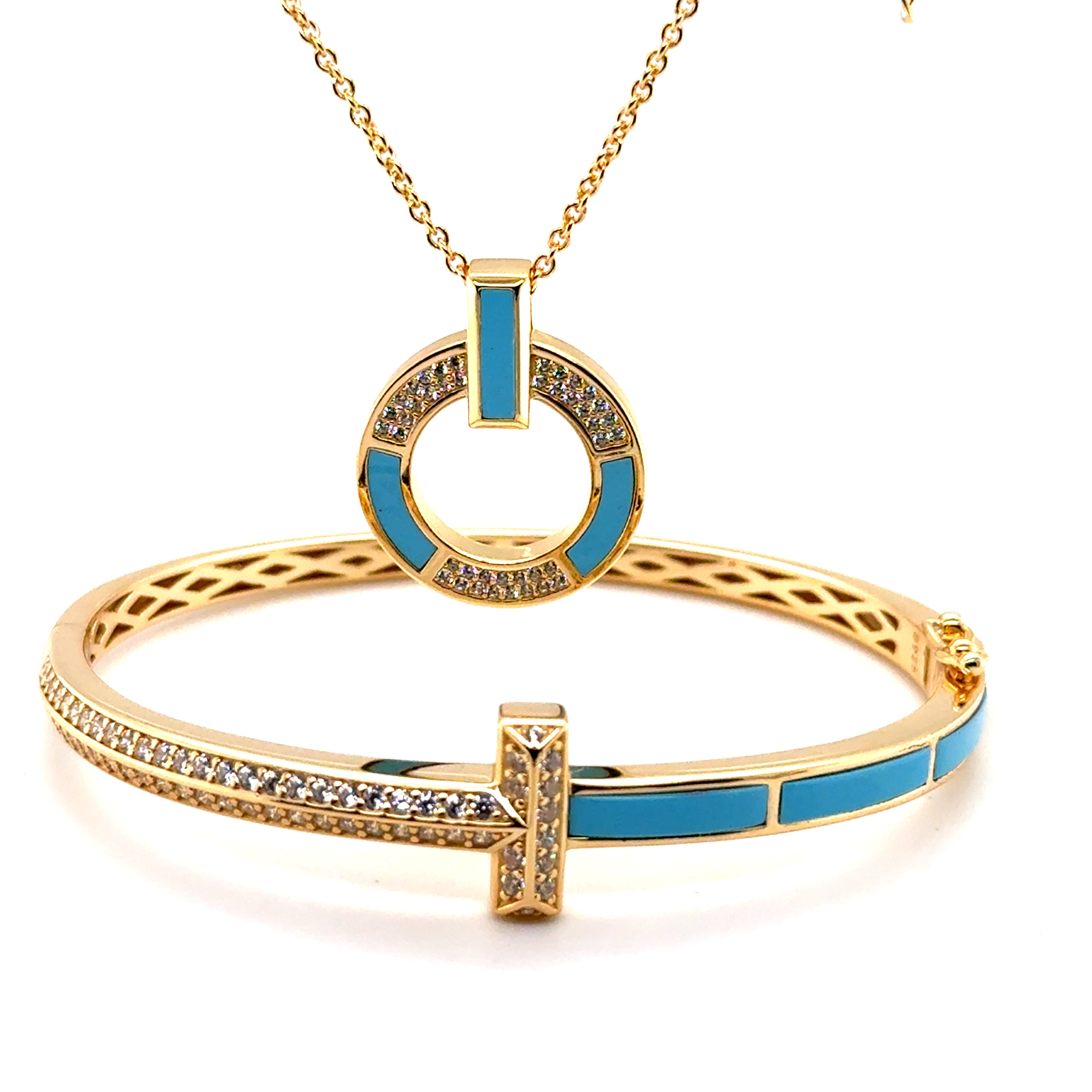 Комплект от “Jacklin hugasian” в сребро с позлата,тюркоаз и циркони.