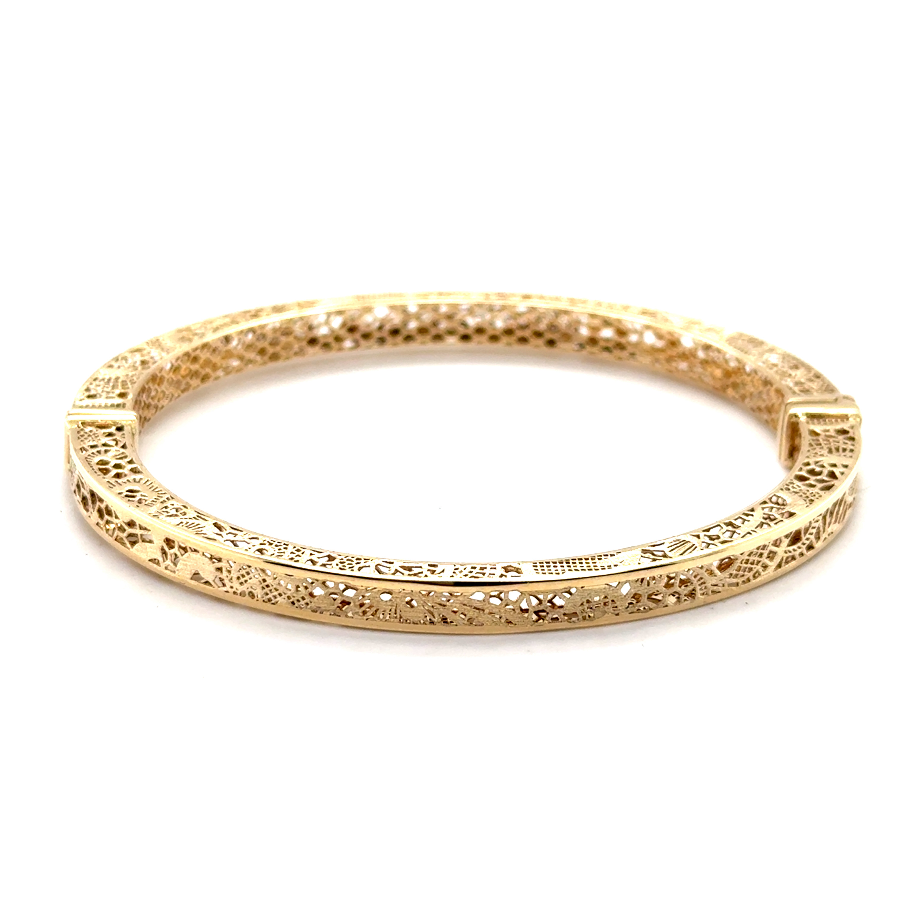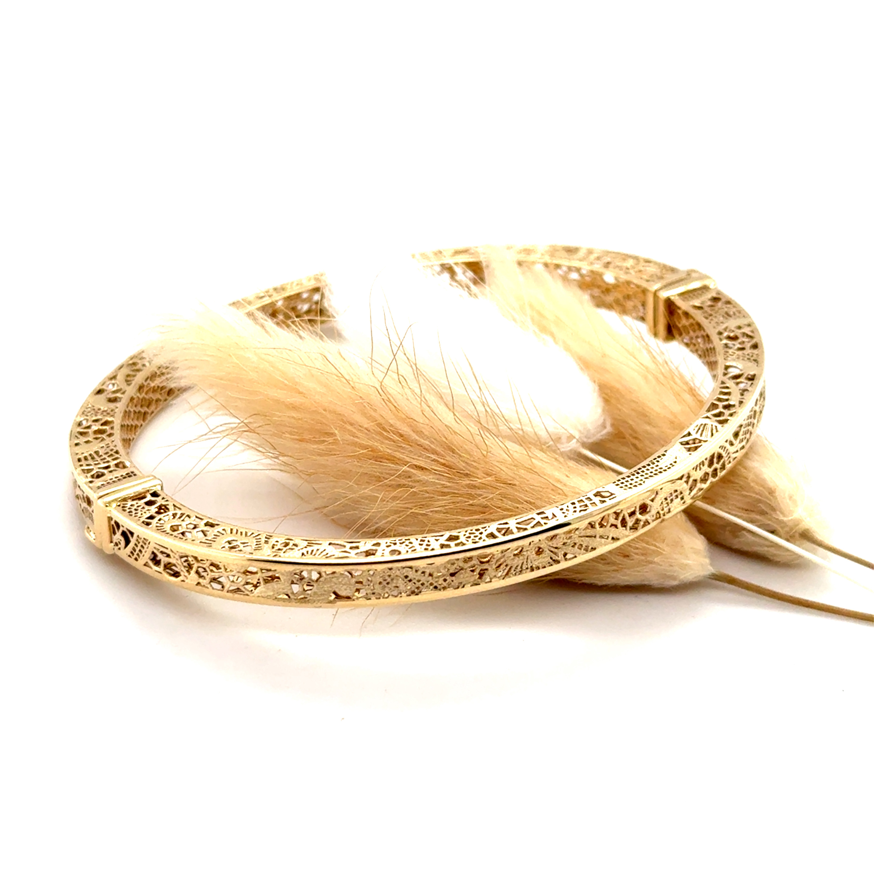 Твърда гривна от " Jacklin hugasian " в жълто злато мат и гланц.Филигранна изработка.